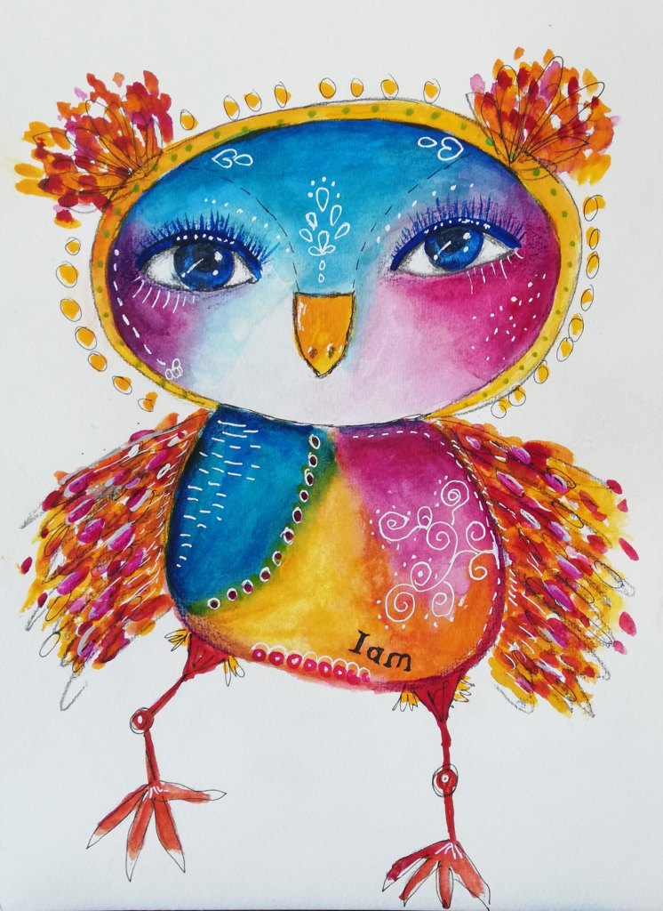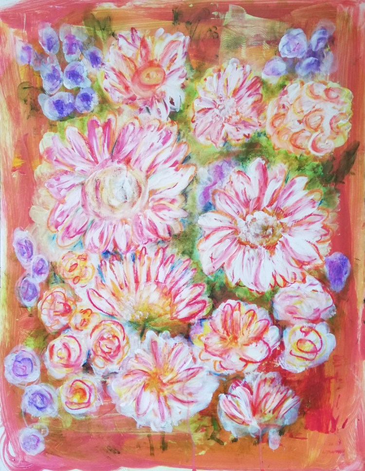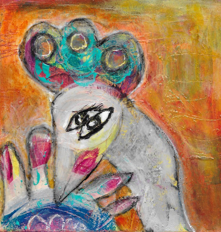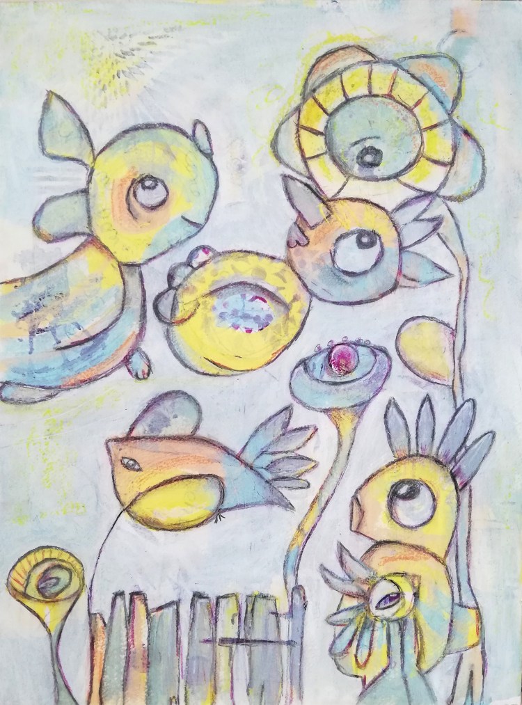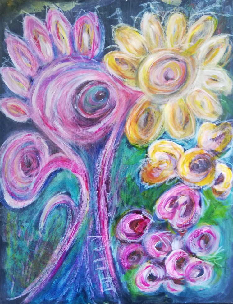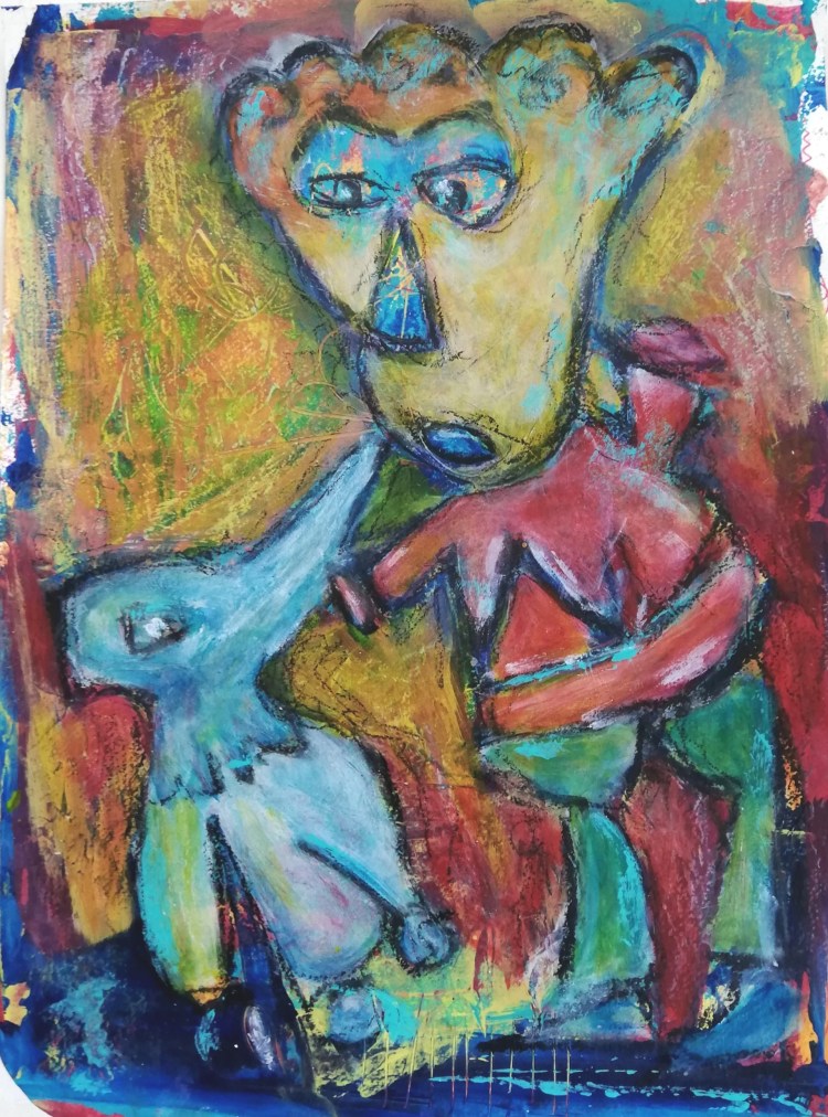 Acryl & Wachskreide auf Holz