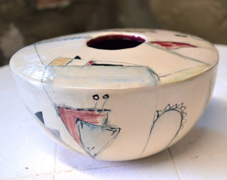 Irgendwann hatte ich die Idee, meine Malerei mit der Töpferei zu verbinden. Doch für die Menge an Experimente, die es benötigt, um diese Idee zu realisieren, reichten die gelegenlichen Töpferkurse einfach nicht mehr aus.