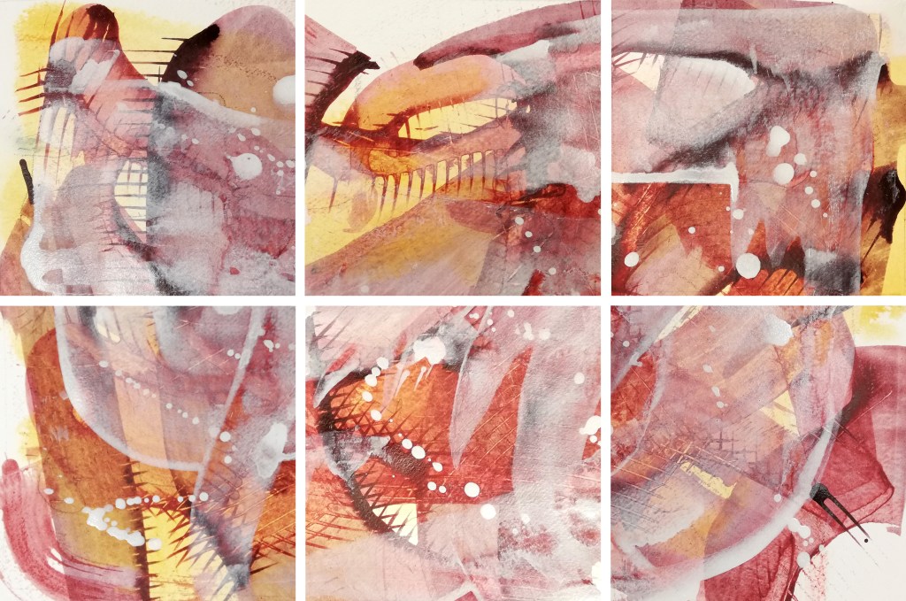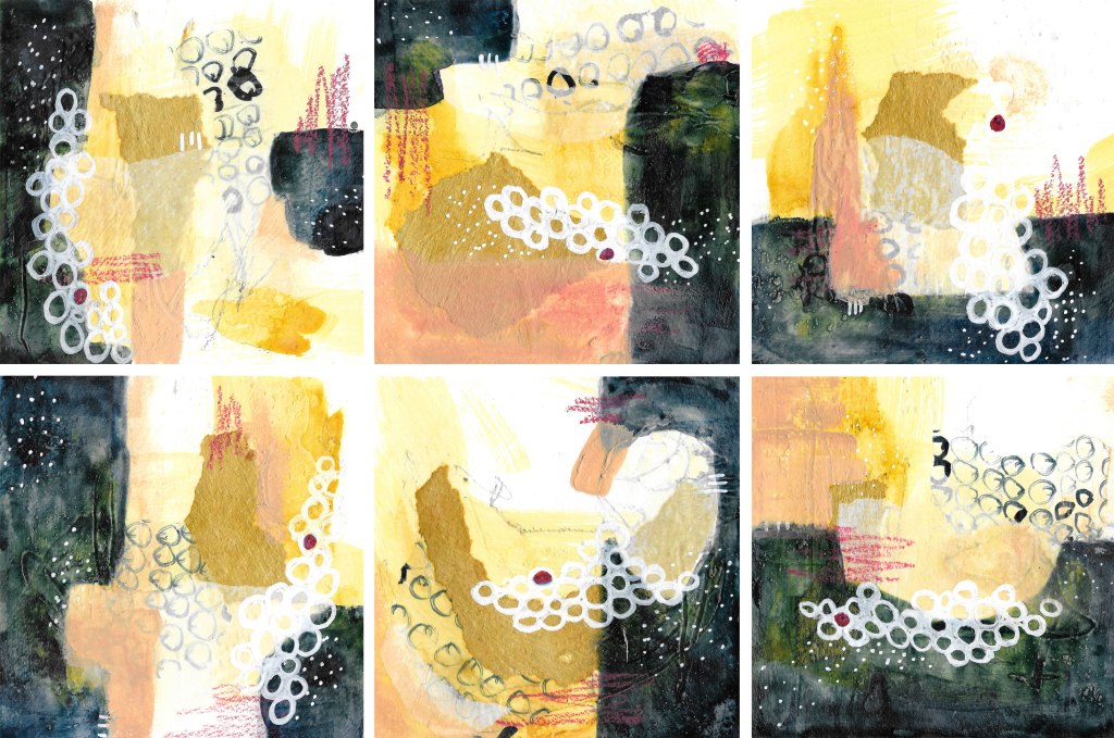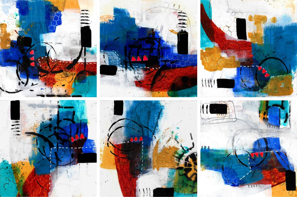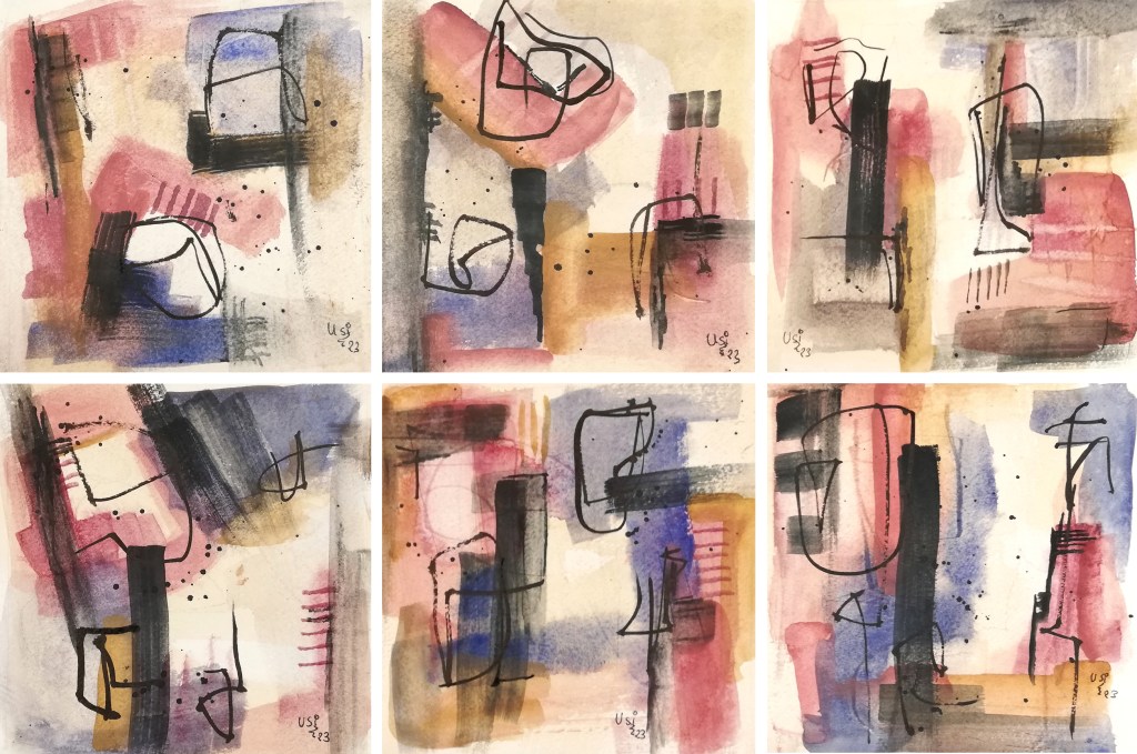 Aktuell ist meine Malerei geprägt von Vielfalt in kleinen Formaten – meine „Little Abstracts“ – ich liebe es gerade so zu malen und zeige mich mit ihnen. Diese in der Regel aus sechs Einzelbildern bestehenden Serien bieten mir viel Raum – hört sich paradox an – mich auszuprobieren, spielerisch und mit ganz viel Freude.