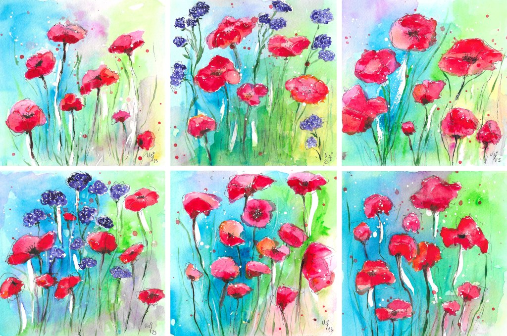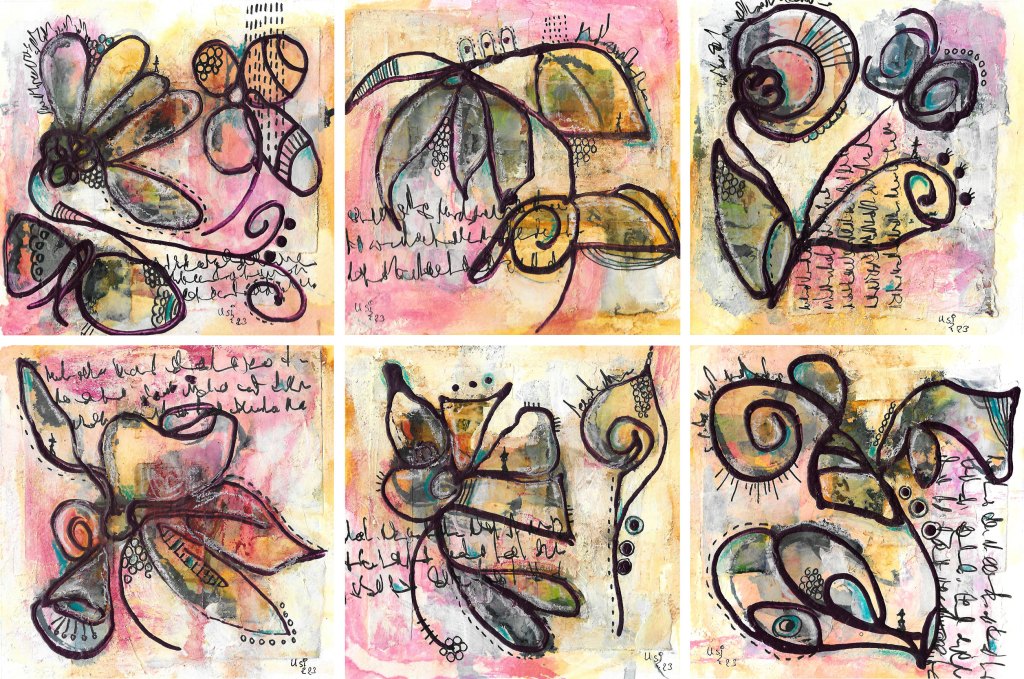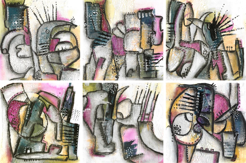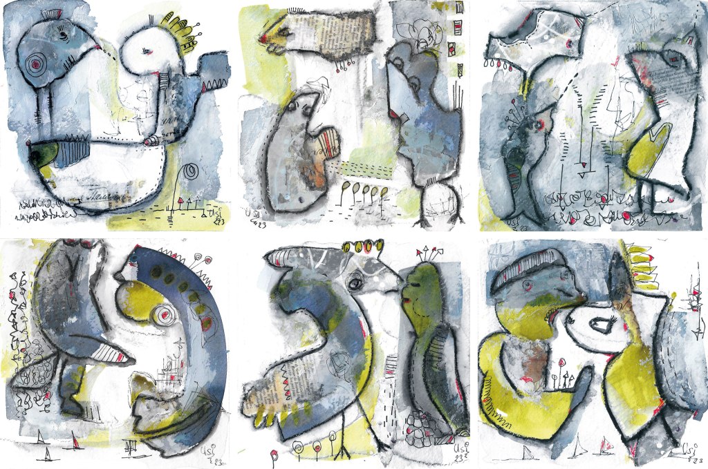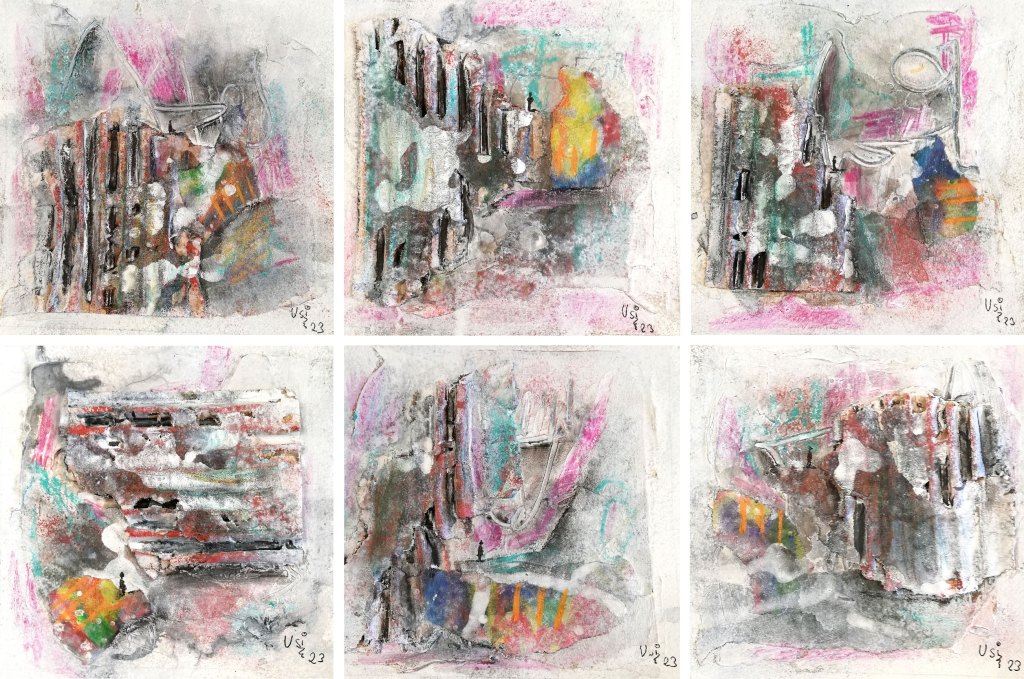 Aktuell ist meine Malerei geprägt von Vielfalt in kleinen Formaten – meine „Little Abstracts“ – ich liebe es gerade so zu malen und zeige mich mit ihnen. Diese in der Regel aus sechs Einzelbildern bestehenden Serien bieten mir viel Raum – hört sich paradox an – mich auszuprobieren, spielerisch und mit ganz viel Freude.
