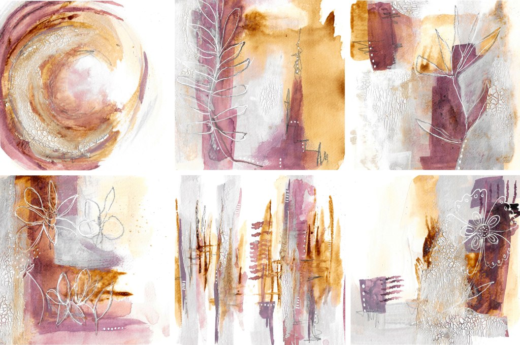 Seelenwesen meets Little Abstracts. Selbstgemachte Pflanzentinten auf Aquarellpapier (Mixed Media)