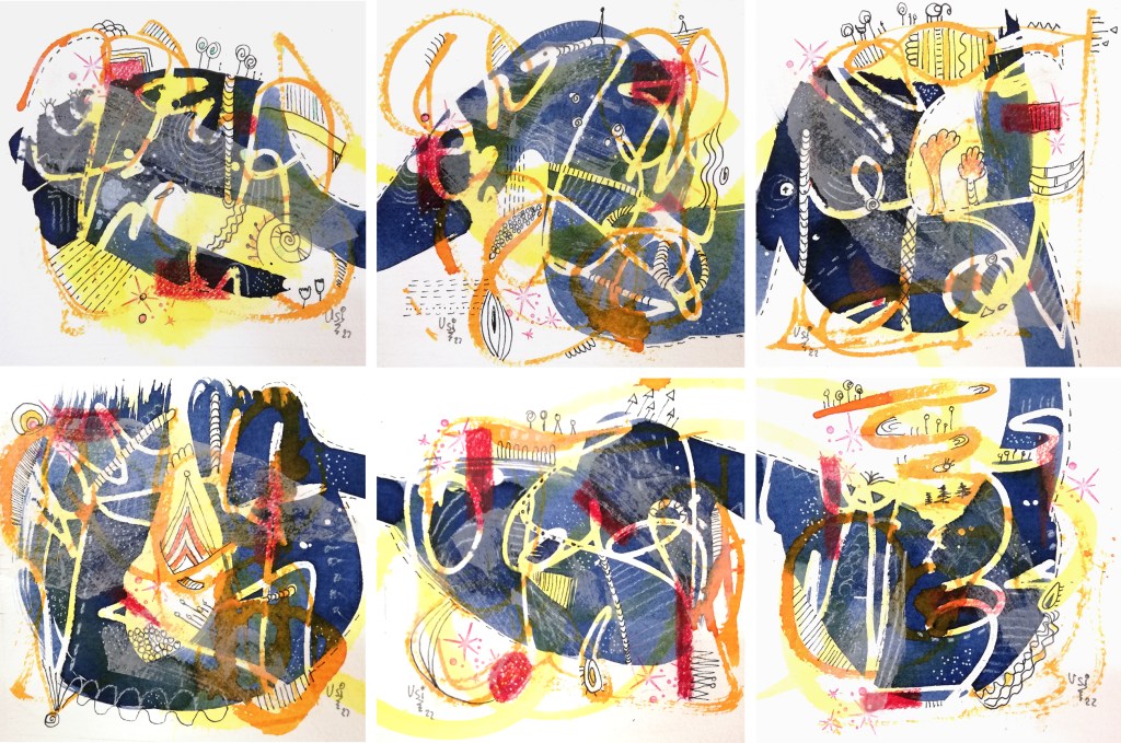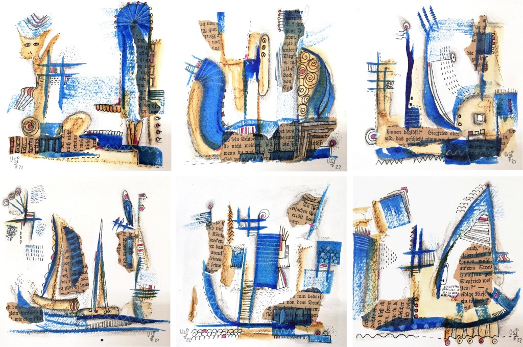 Der Wechsel auf das Format 12 x 12 cm brachte für mich die Lösung. Da ich nur wenige 100 Meter vom Neuwarper See am Stettiner Haff lebe und ich – Ruhrgebietskind – Zeit meines Lebens das Meer und Boote liebe, bleibt es nicht aus, dass eben dies auf meinen Bilder Form annimmt.