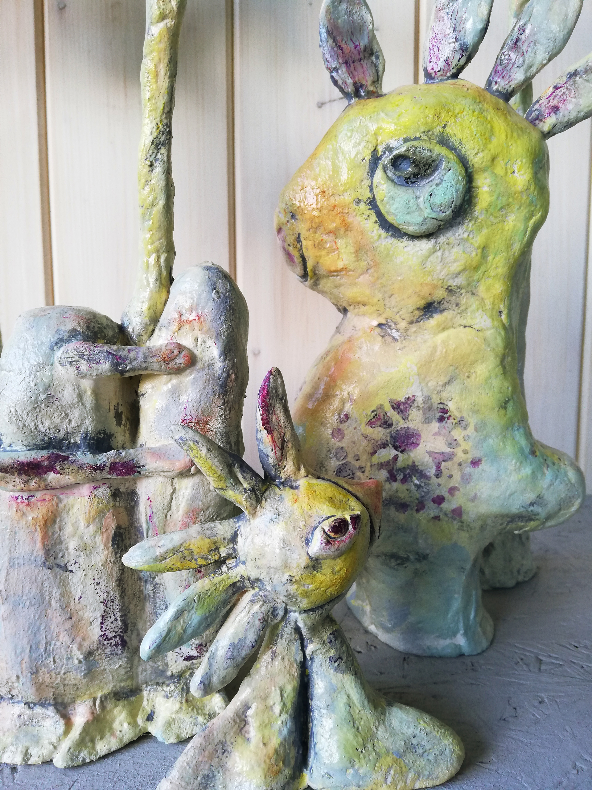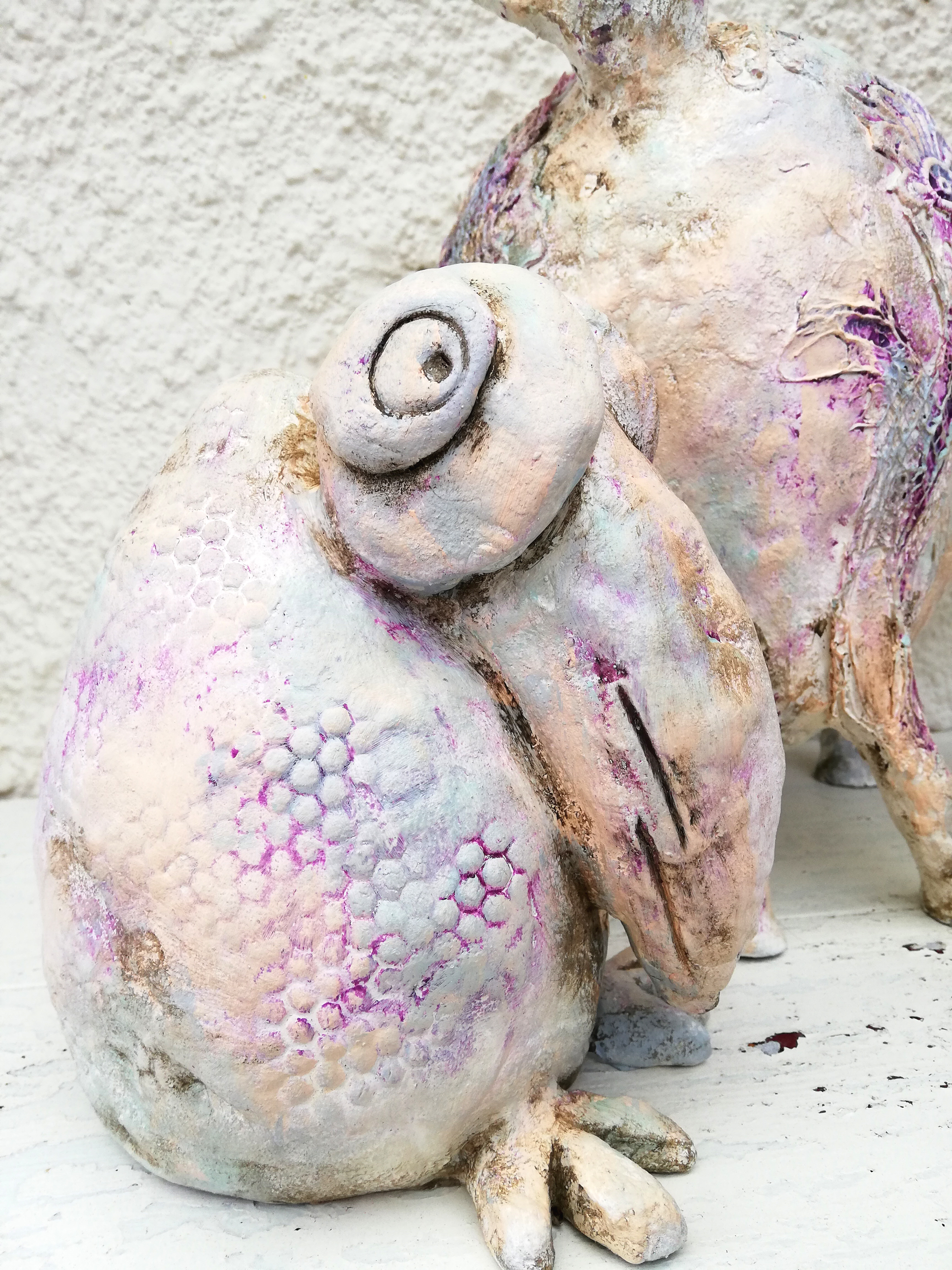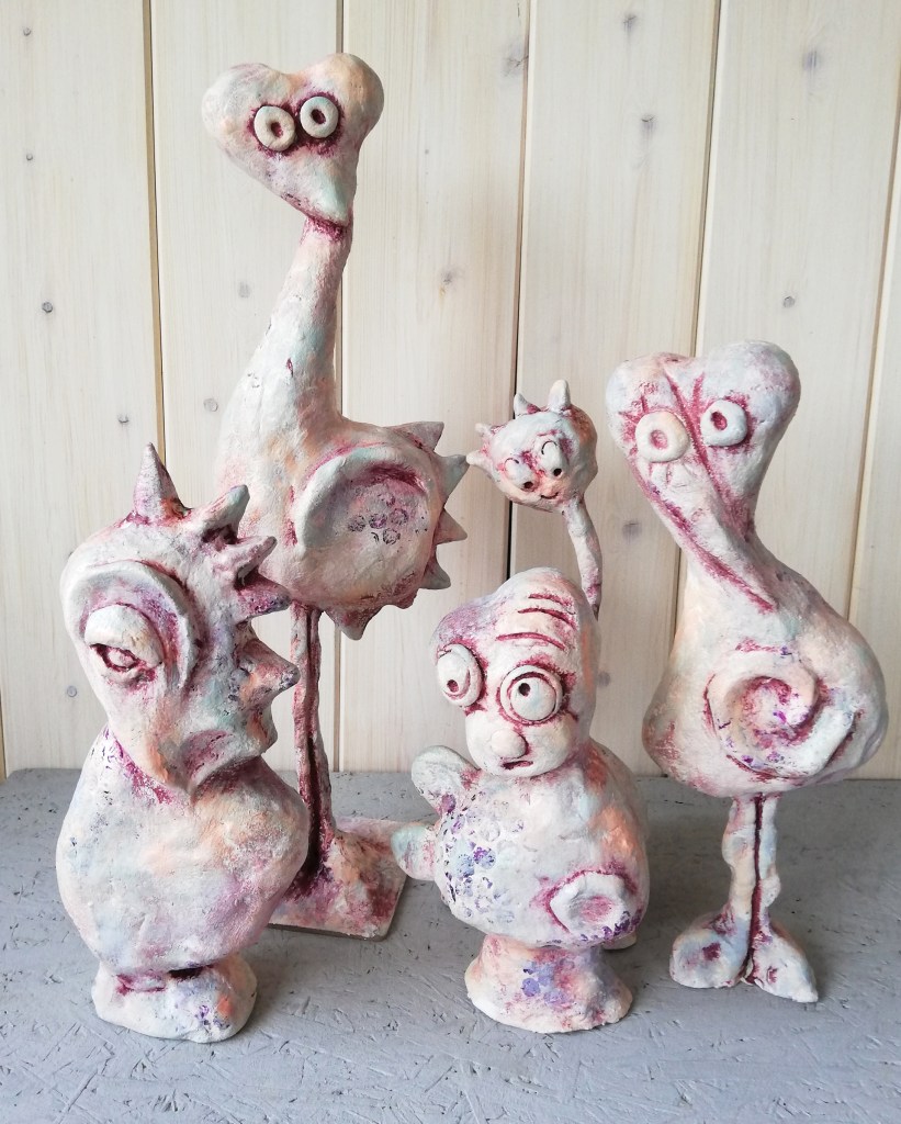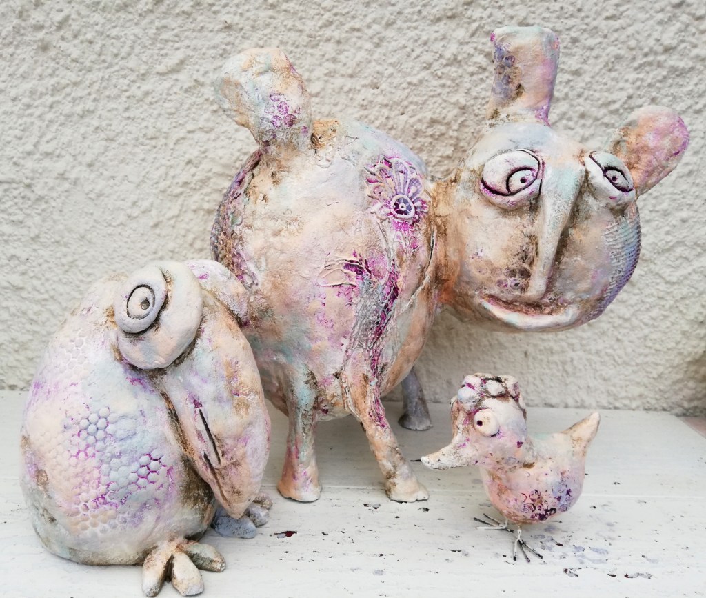 Aufgetaucht aus der intuitiven Malerei gewinnen sie an Dimension in dem sie modelliert und geformt werden.