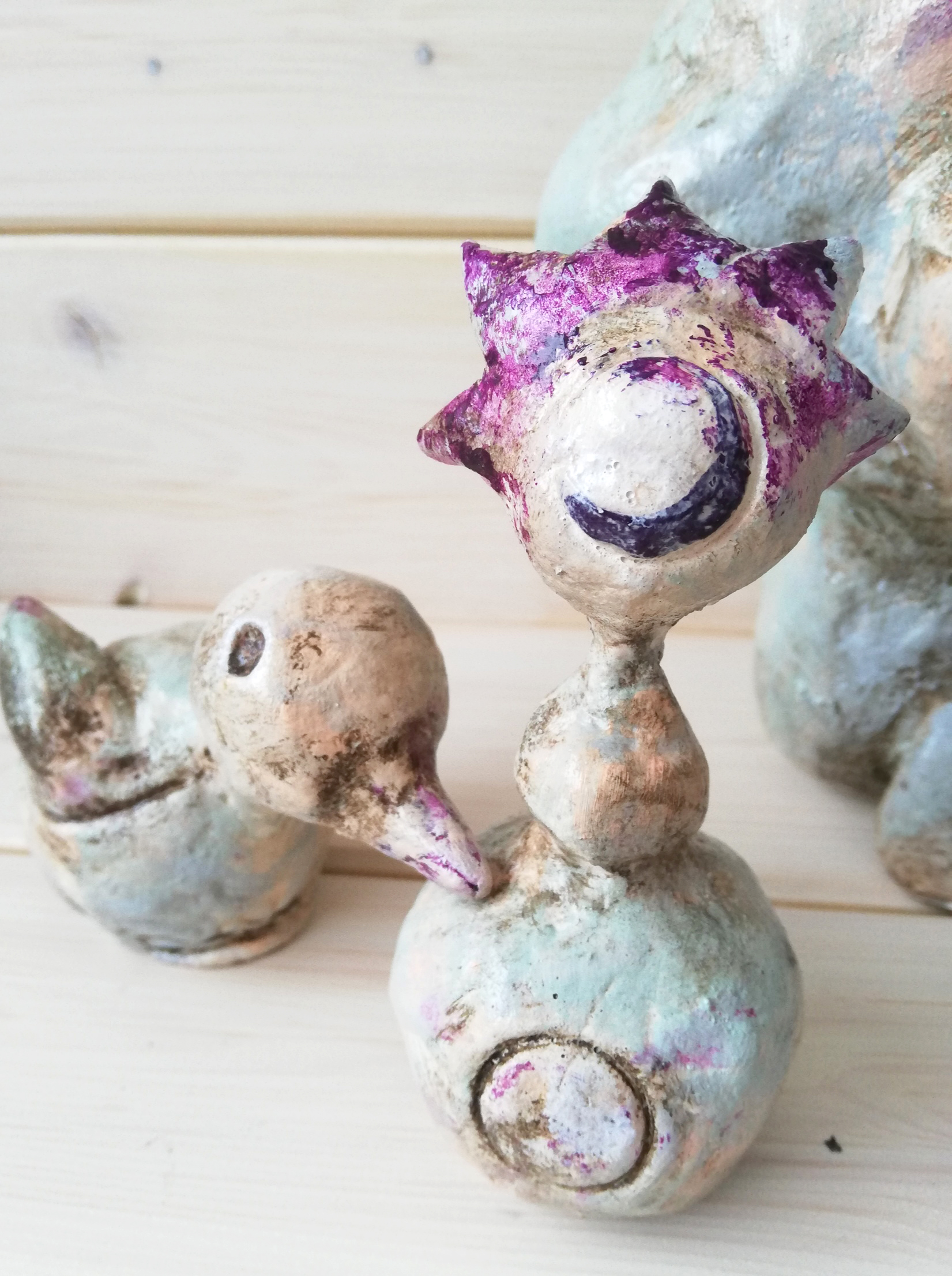Die sinnliche Freude des Modellierens, die Herstellung des Kontaktes zu dem intuitiv entstandenen Wesen lassen den gesamten Schaffensprozess zu einer bewegenden, ganzheitlichen Seelenerfahrung werden.